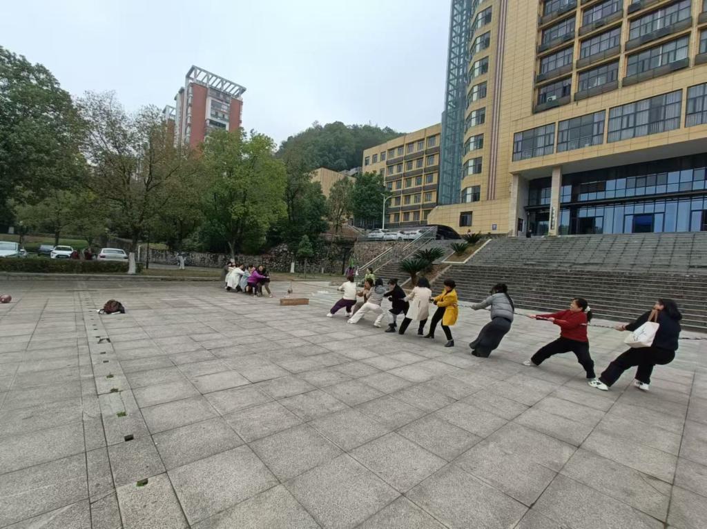 随后的拔河比赛更是精彩。比赛一开始,双方队员就紧紧握住绳子,身体后倾,双脚用力蹬地,展开了激烈的较量。数学组的女员工们齐心协力,口号声震耳欲聋,每一位队员都使出浑身解数;物理组的女员工们也毫不退缩,咬紧牙关,顽强抵抗。在紧张激烈的比拼中,数学组凭借出色的团队协作和顽强的毅力,以3局2胜的成绩赢得了拔河比赛的胜利。