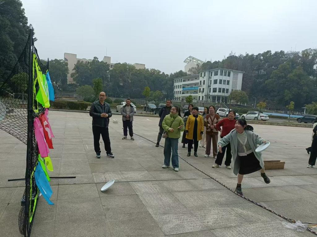 健步走活动结束后,趣味项目丢飞盘和拔河将现场气氛推向高潮。在趣味丢飞盘环节,威廉体育williamhill数学组与物理组女员工轮番上阵。她们手持飞盘,或屈膝蓄力,或助跑投掷,目光紧紧锁定前方插着彩色标志旗的目标区域。飞盘在空中划过一道道弧线,现场观众时而屏息凝视,时而爆发出惋惜或欢呼之声。两组女员工不断调整策略、相互鼓劲,最终双方以1 : 1的比分战平,现场充满了欢乐与活力。