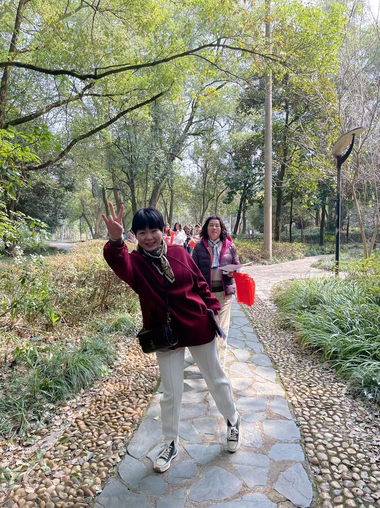 活动在智慧大楼正门广场上拉开帷幕,首先进行的是健步走活动。女员工们沿着校园的林荫道,步伐轻盈,一边漫步,一边交流着生活和工作中的点滴,在欣赏校园春日美景的同时,放松了身心,舒缓了压力。