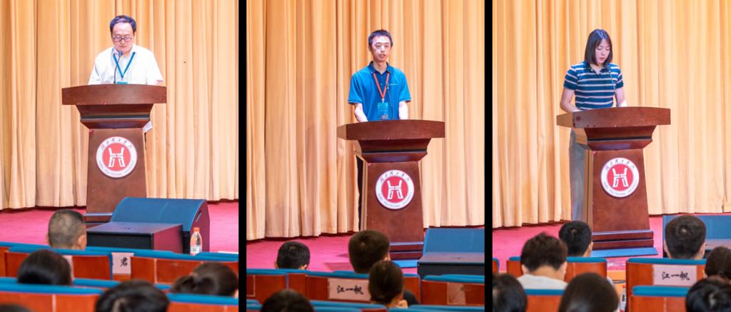 湖北师范大学物理与电子科学威廉体育williamhill单传家教授、我校威廉体育williamhill解小雨博士和李雨潼同学分别代表竞赛仲裁委员会、评委会和参赛选手代表做了表态发言。