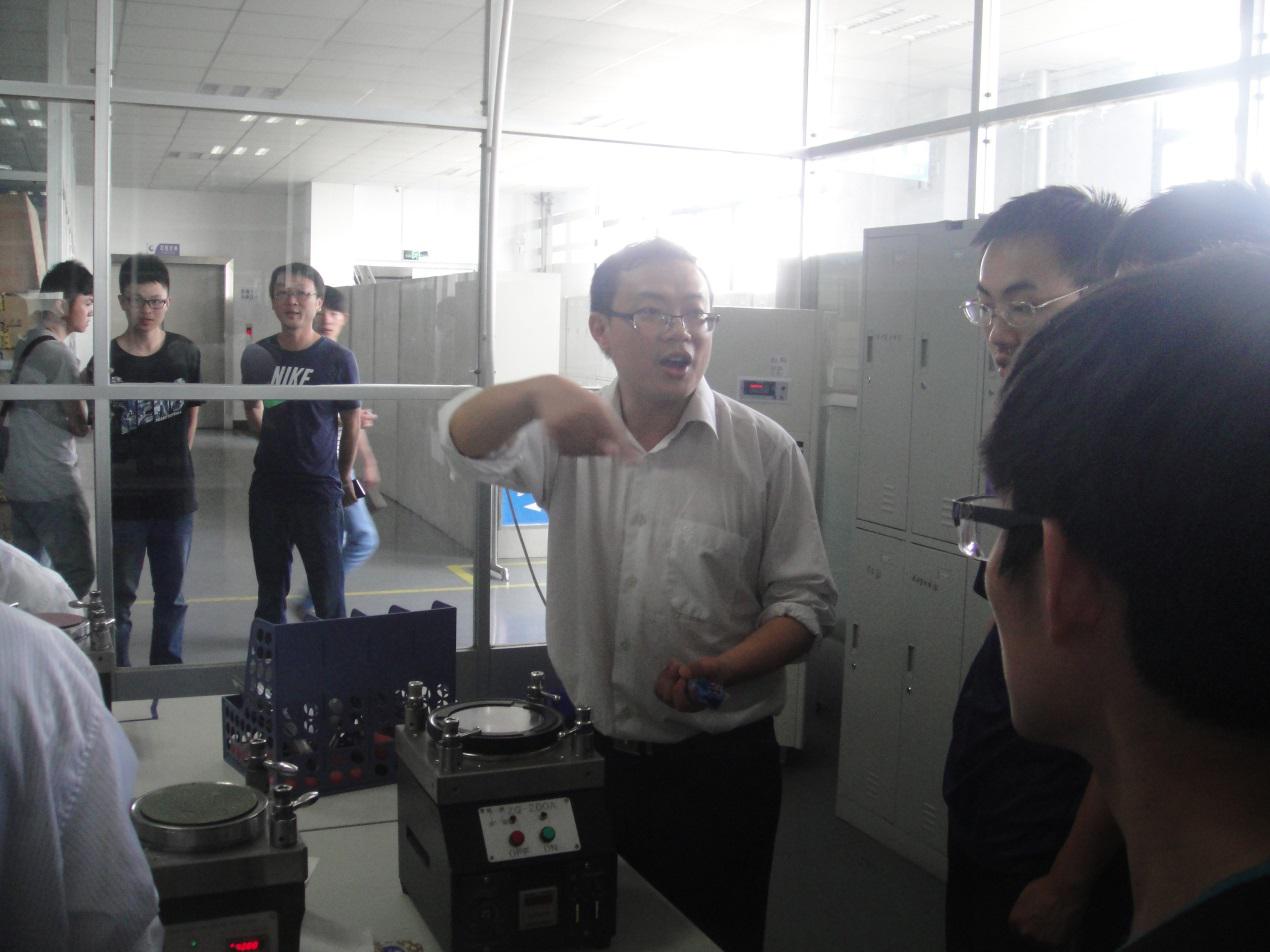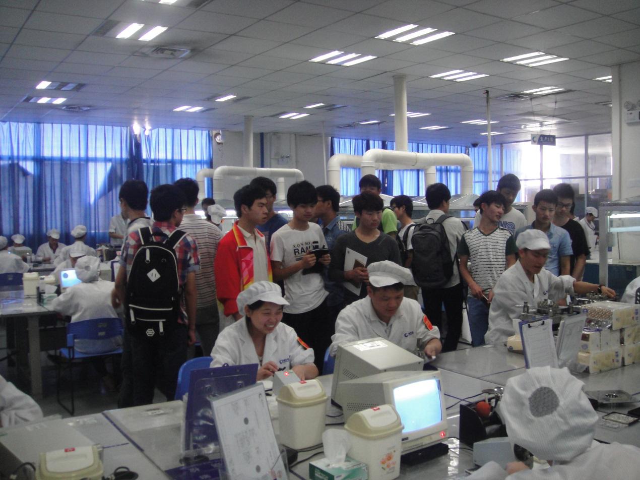 在晨信光电公司的员工带领下,同学们首先观看了晨信光电公司的产品。该公司的产品主要是以高科技为核心技术的光纤产品。接下来,晨信光电的员工为我们讲解了光纤传输的特点,光纤传输在市场的前景以及光纤传输中的技术难题。随后同学们参观了晨信光电公司的厂房。对于一些高科技仪器,同学们表现出了好奇。老师熊辉应用本身的物理知识为同学们解决了一些关于某些仪器不懂得问题,他一一为同学们介绍仪器的工作原理。这引起同学们对物理知识的渴求。